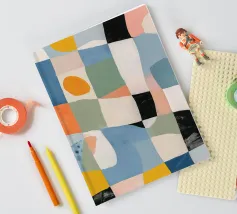 A vibrant abstract collage resembles a patchwork quilt, with different sections featuring varied textures, patterns, and colors, all stitched together in a harmonious and playful composition.