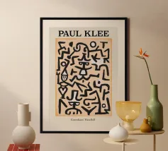 Un intricato mosaico di quadrati dipinti a mano forma un ritmico motivo astratto nei verdi profondi, nei blu, nei rossi e nelle tonalità tenui della terra. I sottili cambiamenti di colore e texture creano una superficie ipnotica e atmosferica, tipica della sperimentazione modernista di Paul Klee. Questo poster digitale ad alta risoluzione (7000×5000 px, 300 dpi) conserva ogni pennellata e ogni raffinata variazione tonale per un'opera d'arte decorativa straordinaria.