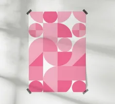 arte astratta rosa, disegno geometrico, arredamento moderno rosa, forme minimaliste, design retrò a cerchio, astratto contemporaneo
