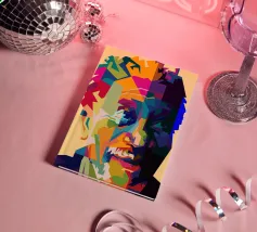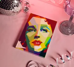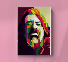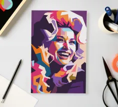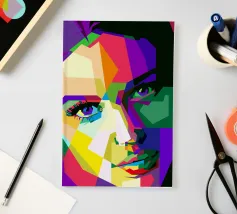 Un ritratto vibrante e geometrico di Sinead O'Connor in stile WPAP, caratterizzato da forme audaci e angolari e da un'impressionante gamma di colori vivaci e contrastanti. L'opera cattura i suoi tratti iconici, come la testa rasata, gli occhi penetranti e la forte espressione facciale, utilizzando blocchi di colore nitidi e frammentati. La composizione enfatizza la profondità e l'emozione mantenendo l'estetica pop-art cubista distintiva di WPAP, creando un tributo visivamente dinamico e moderno alla leggendaria cantante.