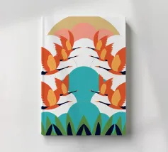 Godetevi una colorata illustrazione naturalistica con un ragno nella sua ragnatela circondato da foglie. Con colori vivaci e un design unico, questa opera d'arte porterà un tocco di natura e di stile artistico al vostro spazio.