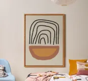 Quadro astratto moderno con forme organiche nei toni caldi del marrone e dell'arancione e linee nere. Opera d'arte minimalista con pennellate nere su sfondo beige. Per gli stili di vita e gli interni bohémien, moderno, essenziale, industriale e scandinavo. Ideale per la camera dei bambini, la camera da letto, il soggiorno o l'ufficio.