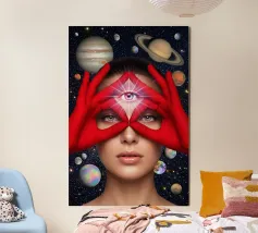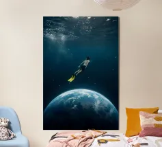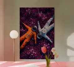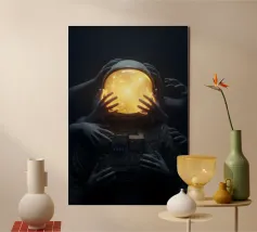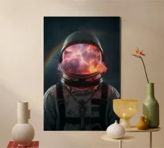 Astronauta di luce con in mano una farfalla in un futuro oscuro pannello forex