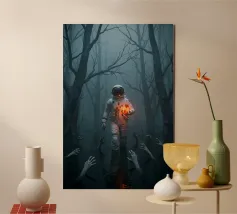Entrate in un momento di forte contrasto ed emozione. Astronauta di luce che tiene in mano una farfalla in un futuro oscuro presenta un esploratore spaziale solitario in un corridoio ombroso, il cui casco luminoso irradia calore mentre una delicata farfalla riposa delicatamente nella sua mano. L'immagine fonde la fantascienza futuristica con il simbolismo poetico, rappresentando la speranza, la fragilità e l'umanità in un freddo mondo tecnologico. L'illuminazione drammatica, le ombre profonde e la composizione minimalista creano un'atmosfera cinematografica e surreale.
