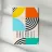 Un poster astratto visivamente dinamico che celebra i principi del design geometrico della scuola Bauhaus. La composizione presenta quattro quadranti interconnessi dominati da archi, semicerchi e un singolo quadrato in una vivace tavolozza di giallo solare, arancione brillante, azzurro e verde acqua intenso, contrastati da un profondo blu navy. Tra gli elementi figurano archi concentrici a strisce nere e marine e un motivo a piccoli punti che crea una texture visiva. La parola "BAUHAUS" è ben centrata in un carattere pulito e verticale. Questo download digitale ad alta risoluzione (7000x5000 pixel, 300 dpi) garantisce un'immagine nitida e colorata.