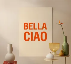 CIAO CIAO con arance su sfondo beige. È perfetto per poster, magliette, teli da mare, accessori per le vacanze, decorazioni estive e articoli lifestyle. Questo motivo porta un tocco fresco e italiano nella vita di tutti i giorni ed è perfetto per l'estate, le vacanze al mare o come regalo.