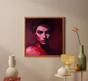 donna che mostra colori vivaci e un'espressione intensa pannello forex