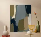 A modern abstract painting built from softly layered, organic blocks of color. Muted slate blue, deep navy, olive green, warm sand, and off-white overlap in a calm, vertical rhythm. The brushwork is relaxed and matte, with subtle texture that gives the surface depth without visual noise. Neutral yet expressive, this piece feels grounded and contemporary, making it an easy fit for modern, minimalist, Scandinavian, or natural interiors. Ideal for living rooms, bedrooms, or workspaces where a sense of balance, restraint, and quiet sophistication is desired.