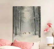 Foresta invernale con cervi nella neve pannello forex