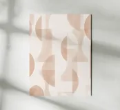Il disegno presenta un'accattivante disposizione di cerchi, rettangoli e forme astratte di foglie sovrapposte, che alludono sottilmente a forme organiche all'interno della struttura. La texture granulosa aggiunge profondità e interesse visivo.