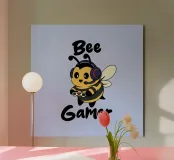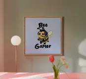Una simpatica ape che indossa un paio di cuffie colorate e tiene in mano un controller di gioco, pronta a giocare. Questa opera d'arte fonde il mondo del gioco con il fascino di una piccola ape ronzante, piena di energia e di gioia. Perfetto per i giocatori, gli streamer e tutti coloro che amano i disegni simpatici e geek.