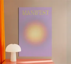 Potente, luminoso, atmosferico: questo motivo glow combina i toni caldi dell'arancione con il rosa intenso e il viola per creare un centro di colore luminoso. Come un centro luminoso, irradia energia, calore e calma allo stesso tempo. Perfetto per ambienti espressivi, studi creativi o come pezzo forte. Fa parte della collezione "Glow Forms", una serie in cui i colori diventano tangibili.