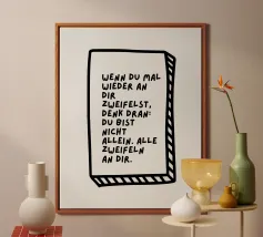 BAWA - Black and White Art è uno spazio per l'arte che si concentra sull'essenziale. Cartoni animati, tipografia, botanica, illustrazioni e poesia si riuniscono qui - ridotti alla potenza del bianco e del nero. Senza distrazioni, senza compromessi. Ogni disegno è creato con amore per i dettagli e un occhio chiaro per la forma, il contrasto e l'atmosfera. In questa estetica minimalista, ogni opera racconta la propria storia: a volte umoristica, a volte poetica, a volte tranquilla, ma sempre espressiva e piena di personalità. Il bianco e il nero creano chiarezza. Rendono visibili le emozioni, vivide le linee e precisi i pensieri. È proprio questo effetto che caratterizza BAWA: Un'arte che appare ridotta, ma che tocca nel profondo. Tutte le stampe sono prodotte in alta qualità, in modo che ogni linea, ogni contorno e ogni parola appaiano perfettamente nitidi - senza tempo, moderni e duraturi. Che siate alla ricerca di una dichiarazione per la vostra casa, di un regalo con un significato o di un'arte che combini calma e forza, BAWA porta la bellezza della semplicità sulle vostre pareti.