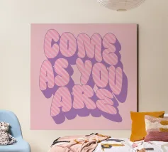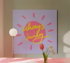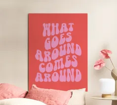 Design giocoso con foglie rosa su sfondo lilla e citazione scritta a mano "va e viene in onde - lo fa sempre" in un tenue color crema. Per tutti coloro che vogliono portare un po' di leggerezza e colore nella vita di tutti i giorni.