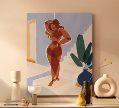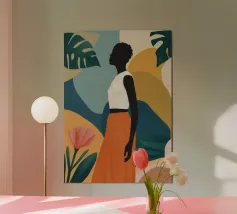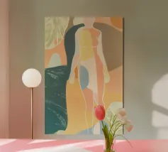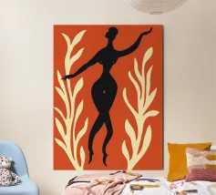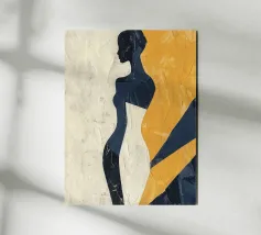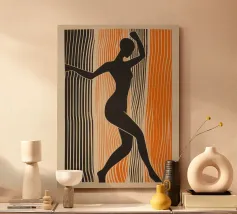 Una silhouette femminile stilizzata emerge da calde forme astratte, evocando eleganza, forza tranquilla e bellezza senza tempo. Ispirata ai ritagli di Matisse e alla composizione Bauhaus, quest'opera d'arte minimalista esplora la tensione poetica tra immobilità e movimento. Con i suoi toni terrosi e la sua consistenza tattile, invita alla contemplazione ed eleva ogni spazio moderno con grazia artistica.