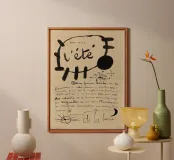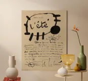 JOAN MIRO Stampa Vintage L'été Exhibition Poster, Nero Beige Wall Art, Moderno Minimalista Astratto