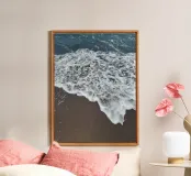 Le spumose onde del mare si infrangono su una spiaggia sabbiosa, creando un bellissimo disegno naturale. Il delicato contrasto tra l'acqua e la riva riflette lo spirito tranquillo dell'isola. Un luogo dove il movimento incontra la quiete e l'energia della natura diventa arte.