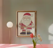 Questo incantevole poster digitale presenta un ritratto a figura intera di un Babbo Natale classico e semplificato. L'immagine è resa brillantemente in uno stile tessile patchwork e trapuntato unico, con il cappotto, il cappello e la barba composti da strisce di tessuto simulato (a quadri, a righe, a tinta unita) e cuciture visibili. Questa estetica rustica e folkloristica utilizza una tavolozza calda e tenue di rossi, creme e marroni, che evoca un'atmosfera di vacanza accogliente e artigianale. Un delicato bordo a catena incornicia l'affascinante figura. Questo pezzo è perfetto per aggiungere un calore tradizionale e casalingo al vostro arredamento natalizio. Riceverete un'eccezione