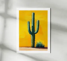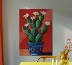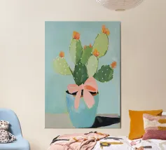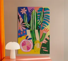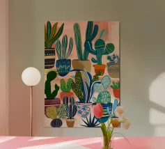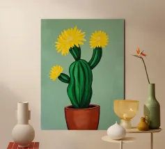 Piccolo cactus in vaso a forma di cubo con pittura fauvismo stile arte