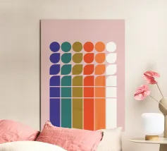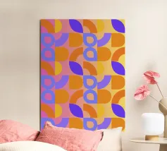 Un disegno astratto geometrico audace e giocoso, caratterizzato da un mix di cerchi, quadrati e forme curve in una vivace tavolozza di ispirazione rétro. La composizione equilibrata e i toni caldi lo rendono un'aggiunta elegante agli interni moderni, all'arredamento di metà secolo e alle pareti colorate delle gallerie. Perfetto per chi ama i motivi astratti e l'estetica geometrica senza tempo. Progettato da showmemars