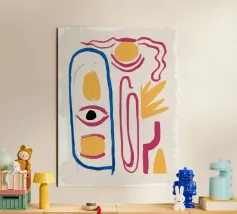Con le sue caratteristiche linee nere decise e i campi di colore vibranti di ciano, magenta e giallo, Signorino cattura un momento di metamorfosi interiore.