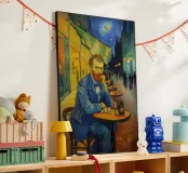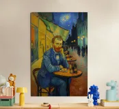 Nel famoso dipinto di Vincent van Gogh "Terrazza del caffè di sera", l'artista siede pensieroso in un vivace caffè notturno, circondato da un cielo stellato scintillante.