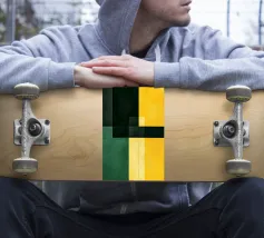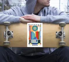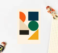Ispirata all'estetica moderna del Bauhaus e della metà del secolo scorso, questa opera d'arte presenta audaci blocchi geometrici in giallo, verde, blu, nero e bianco sporco. Le sue linee pulite e i forti contrasti catturano l'armonia senza tempo del design modernista.
