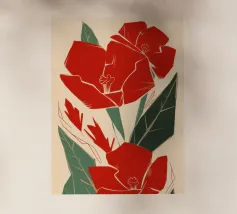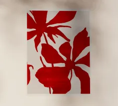 Questa accattivante opera d'arte astratta presenta un'armoniosa miscela di audaci elementi botanici e design minimalista. Caratterizzata da vivaci tonalità di rosso, crema e verde intenso, le foglie stilizzate e le forme organiche creano una composizione dinamica che celebra la bellezza della natura. Perfetto per gli interni moderni, questo pezzo evoca un senso di tranquillità e raffinatezza, aggiungendo un tocco artistico e vivace a qualsiasi spazio.