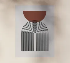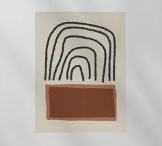 Quadro astratto moderno con forme organiche nei toni caldi del marrone e dell'arancione e linee nere. Opera d'arte minimalista con pennellate nere su sfondo beige. Per gli stili di vita e gli interni bohémien, moderno, essenziale, industriale e scandinavo. Ideale per la camera dei bambini, la camera da letto, il soggiorno o l'ufficio.