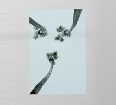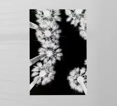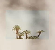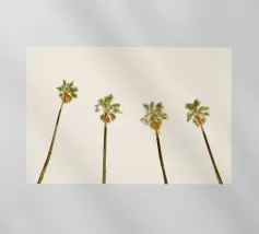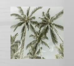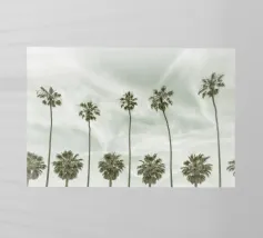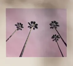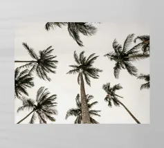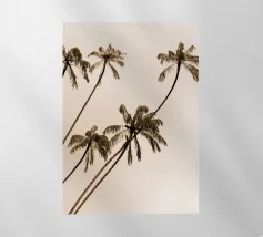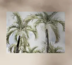 Lasciatevi trasportare dall'eleganza e dalla maestosità di queste palme imponenti. Mentre le loro cime formano un disegno circolare contro un cielo morbido e pastello, sentite la pace e la calma che offre la natura. Questa angolazione insolita non solo mette in risalto l'altezza degli alberi, ma anche la loro bellezza senza tempo.