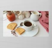 Accoglienti caffè e biscotti disposti su un tavolo dai colori caldi. pellicola backlit