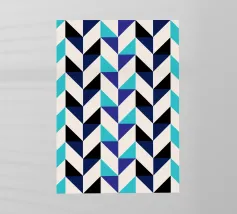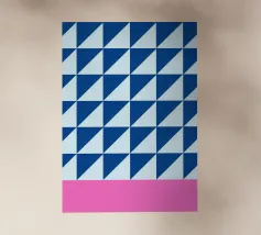 Questa immagine presenta un motivo geometrico composto da forme triangolari alternate, ciascuna riempita da linee orizzontali disegnate a mano.I triangoli sono disposti in un formato a griglia, creando un design ripetitivo e strutturato.La tavolozza dei colori offre uno sfondo morbido e viola con linee blu scuro all'interno dei triangoli.L'effetto disegnato a mano aggiunge una sensazione dinamica e strutturata al motivo altrimenti nitido e angolare.Questo design moderno è ideale per progetti grafici, tessuti o sfondi digitali e offre una sensazione dinamica e strutturata.