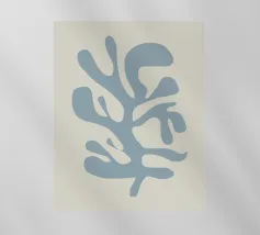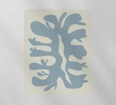 Opera d'arte minimalista con alghe bianche astratte o forme simili a coralli su uno sfondo grigio-blu tenue. Perfetto per un'estetica moderna e organica.