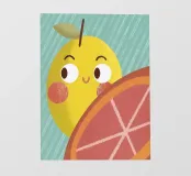 L'allegra illustrazione presenta un personaggio sorridente di un limone giallo accanto a una fetta d'arancia.