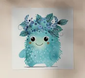Un allegro mostro di mirtilli con una corona di bacche e foglie. Questo disegno combina fantasia, natura e allegria: ideale per i bambini e gli appassionati di illustrazioni giocose.