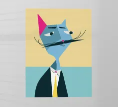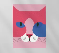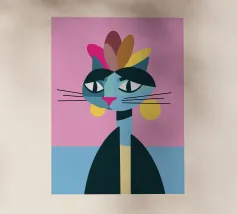 Una vivace illustrazione di gatti ispirata alla pop-art, con un sorprendente felino blu dalla finitura astratta e strutturata. Su uno sfondo rosa, con una vivace stampa di labbra, questo disegno emana fascino e un'estetica moderna. Perfetto per gli amanti dei gatti e per chi apprezza l'arte colorata e accattivante!