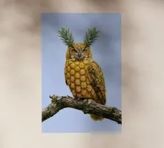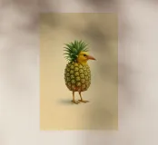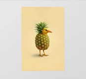 Portate una ventata di fascino tropicale nel vostro spazio con questa stravagante opera d'arte con uccello ananas. Con un uccello giallo brillante che emerge da un corpo di ananas realistico, completo di corona di foglie ed espressione giocosa, questo disegno unisce creatività e umorismo in uno stile pulito e moderno. Il morbido sfondo beige ne esalta l'estetica calda ed estiva. Perfetto per cucine, camere dei bambini, studi o collezionisti di arte stravagante e fantasiosa, aggiunge un tocco divertente ed edificante a qualsiasi interno.
