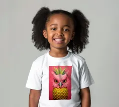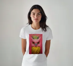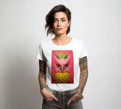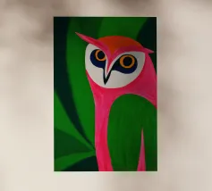 Surreale, giocoso e visivamente assolutamente irresistibile: questo quadro combina un gufo e un ananas per creare una fantastica figura ibrida - un ottimo esempio di moderno pop surrealismo. La texture iperrealistica incontra mondi di colori brillanti tra il rosa, il giallo e il verde. Un'opera che rompe le aspettative e colpisce per l'attenzione ai dettagli, l'ironia e la concisione grafica. L'influenza della cultura pop tropicale è inconfondibile: perfetta per chi ama le affermazioni visive forti e ammiccanti nelle proprie quattro mura. Sapore e vitamine per la vostra cucina!