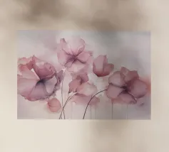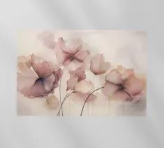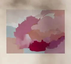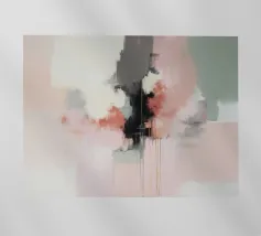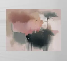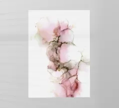 Un delicato pezzo floreale astratto con una forma centrale simile a un fiore in bianco e rosa tenue, con linee più scure simili a inchiostro che si irradiano verso l'esterno, come se svelassero l'anima di un fiore su uno sfondo tenue. Stile Melissa Herrington.