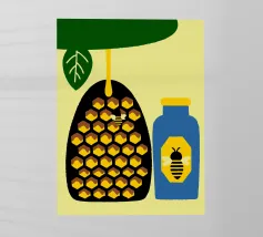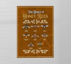 Questa grafica colorata mostra nove diverse specie del genere Apis, amorevolmente presentate come la "Squadra Apis". Ogni ape è illustrata in dettaglio ed etichettata per nome: Apis andreniformis, dorsata, laboriosa, nigrocincta, florea, koschevnikovi, mellifera e cerana. Al centro, un alveare stilizzato. La scritta "Nature's Sweetest Workers" sottolinea l'importanza di queste api per l'ambiente. Lo sfondo punteggiato in arancione caldo sottolinea il design amichevole e informativo.