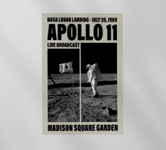 Questo poster presenta una rappresentazione artistica della storica missione lunare Apollo 11, concentrandosi sulla superficie lunare con un'etichettatura dettagliata di crateri significativi come Tycho e Copernicus. Al centro del disegno c'è la navicella Apollo 11 in orbita intorno alla Luna. In basso a destra sono elencate le informazioni chiave della missione, tra cui la data, il luogo di atterraggio nel "Mare della Tranquillità" e il tipo di razzo Saturn V. Questo poster cattura lo spirito dei giorni pionieristici dei viaggi spaziali ed è perfetto per i fan dello spazio e gli appassionati di storia.