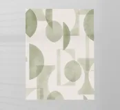 Il disegno presenta un'accattivante disposizione di cerchi, rettangoli e forme astratte di foglie sovrapposte, che alludono sottilmente a forme organiche all'interno della struttura. La texture granulosa aggiunge profondità e interesse visivo.