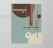 Un'opera d'arte astratta di grande impatto, ispirata ai principi del design Bauhaus. Questo pezzo presenta cerchi, rettangoli e linee sottili disposti in una composizione geometrica equilibrata. La tavolozza di colori, composta da blu smorzato, marrone intenso e crema morbido, aggiunge calore e raffinatezza. Perfetta come opera d'arte da parete per interni moderni, minimalisti o di metà secolo, questa opera d'arte conferisce struttura e stile a qualsiasi spazio, rimanendo versatile e senza tempo.