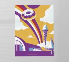 Questa immagine presenta un'interpretazione ipnotica di un'iconica auto d'epoca, catturata con dettagli nitidi in mezzo al trambusto di una città moderna.