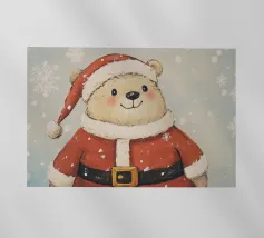Incantevole illustrazione di Babbo Natale con il suo tradizionale vestito e cappello rosso, circondato da fiocchi di neve che cadono dolcemente, catturando lo spirito festivo della stagione delle feste.