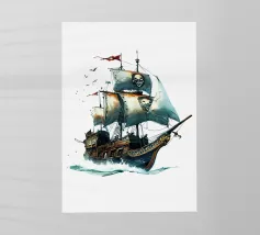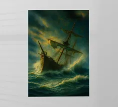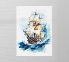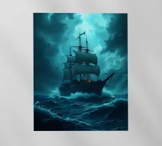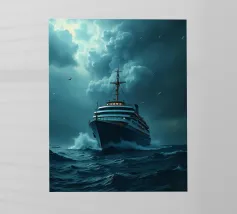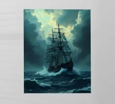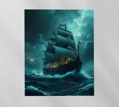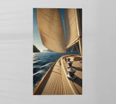 Un veliero storico fende con forza le onde blu profondo sotto un cielo vivido. La luce del sole al tramonto dona alla vela riflessi caldi e fa apparire l'imbarcazione maestosa. Questo poster cattura in modo impressionante il fascino della navigazione a vela e la libertà del mare aperto - un punto di forza per gli interni marittimi.