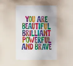 Aggiungete un tocco di positività al vostro spazio con questa vivace stampa tipografica. Caratterizzata dal messaggio edificante "Be Your Own Kind of Beautiful" (Sii bella come te stessa) in splendide lettere acquerellate arcobaleno, questa stampa celebra l'individualità e l'amore per se stessi. Lo stile dipinto a mano aggiunge un tocco personale, mentre lo sfondo bianco fa risaltare il testo colorato. Perfetta per ravvivare qualsiasi ambiente, questa opera ispiratrice serve come promemoria quotidiano per abbracciare la propria bellezza unica. Ideale per la camera da letto, l'ufficio o la zona giorno, questa stampa d'arte è un regalo gradito o un'affascinante aggiunta al proprio arredamento.