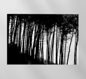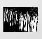 Fotografia in bianco e nero di una pineta