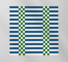 Checks and Lines blu e bianco unisce un fascino senza tempo a un tocco eclettico. La rinfrescante combinazione di blu d'ispirazione nautica e di bianco nitido evoca una brezza costiera, mentre il motivo strutturato aggiunge un'eleganza vintage. Perfetto per l'autunno e l'inverno, questo disegno dona un'atmosfera fresca e accogliente a qualsiasi ambiente.