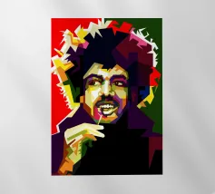 Un vibrante ritratto in stile WPAP di Bob Ross, l'amato pittore noto per la sua voce calma e i suoi "alberelli felici". Questa opera d'arte reimmagina Ross con audaci forme geometriche e colori vivaci, catturando i suoi iconici capelli afro, il suo sorriso sereno e il suo spirito artistico in una moderna estetica pop-art.